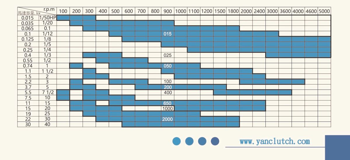 Reference information for electromagnetic clutch model selection.