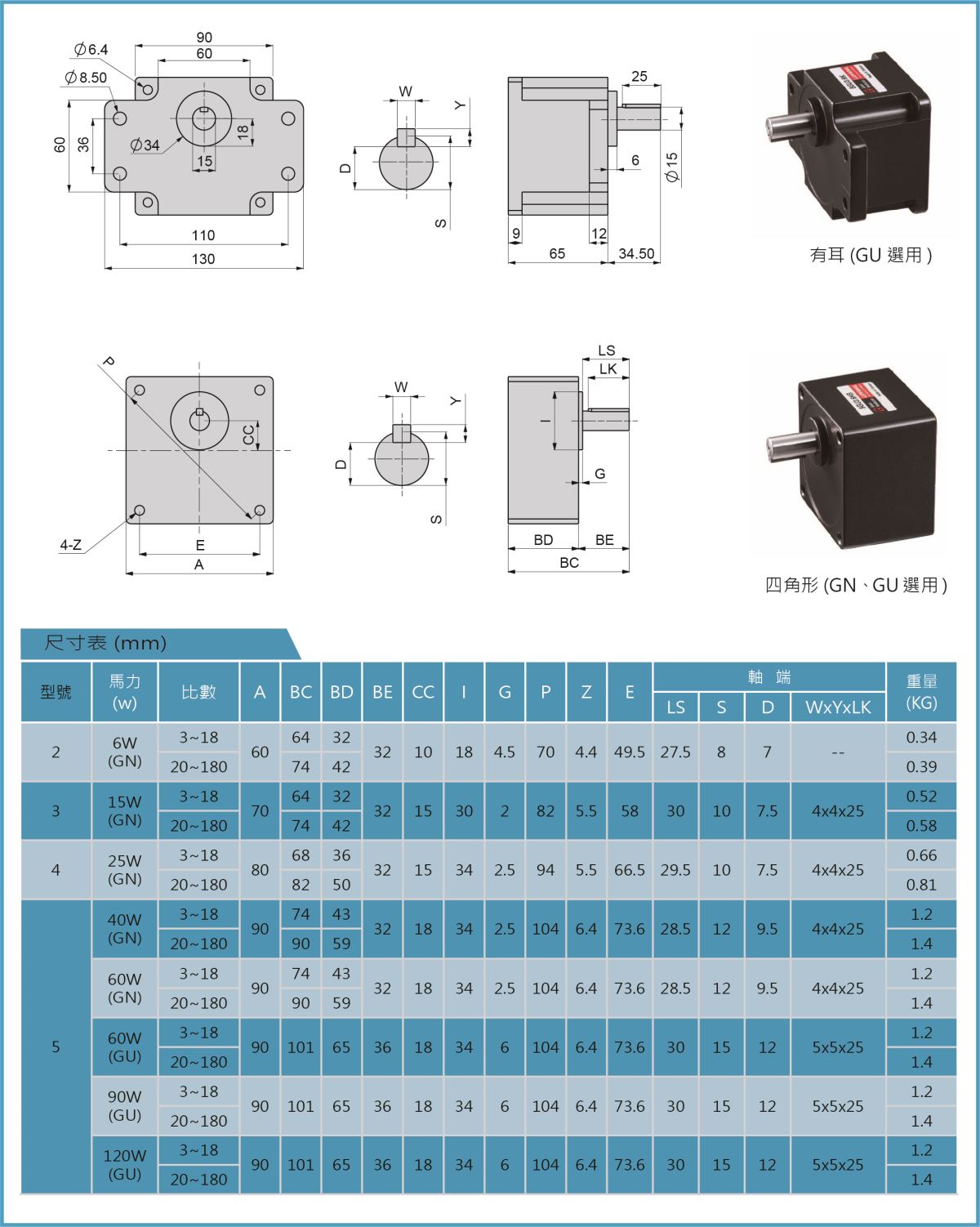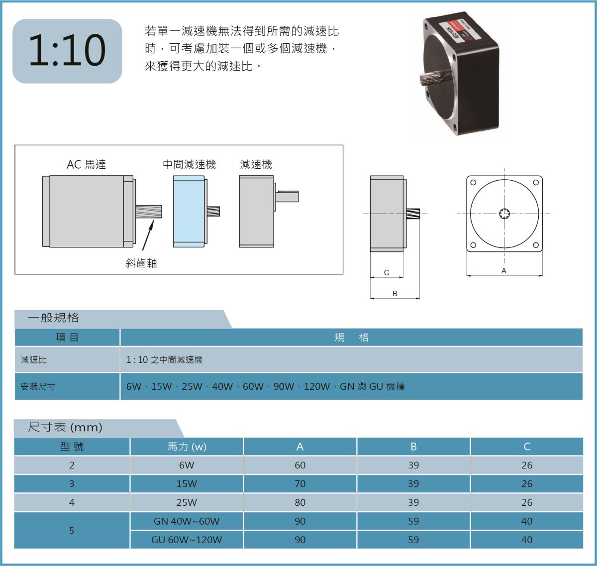 規(guī)格:馬力6W~150W,可依使用需求選用