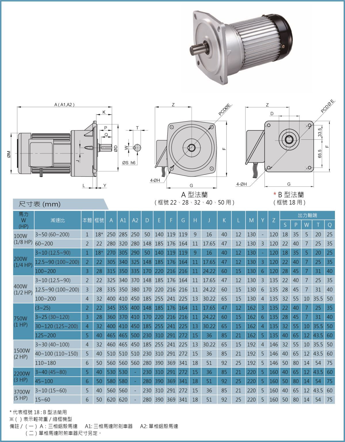- 規(guī)格:馬力100W~3700W,可依使用需求選用