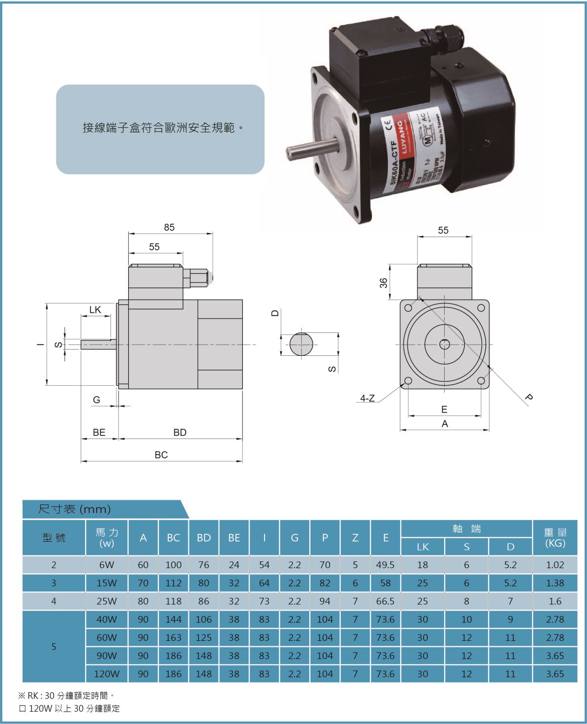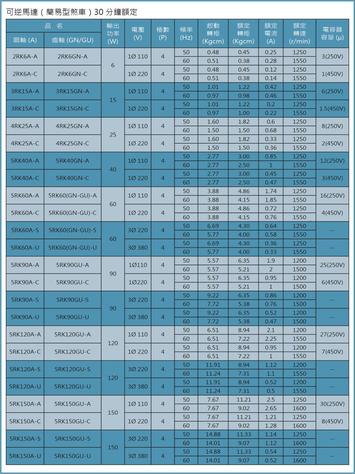 - 規(guī)格:馬力6W~150W,可依使用需求選用
