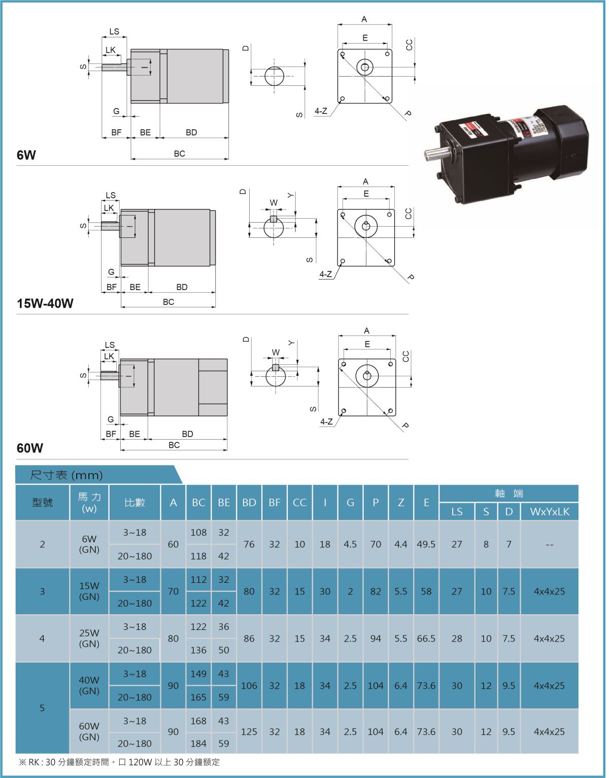 - 規(guī)格:馬力6W~150W,可依使用需求選用