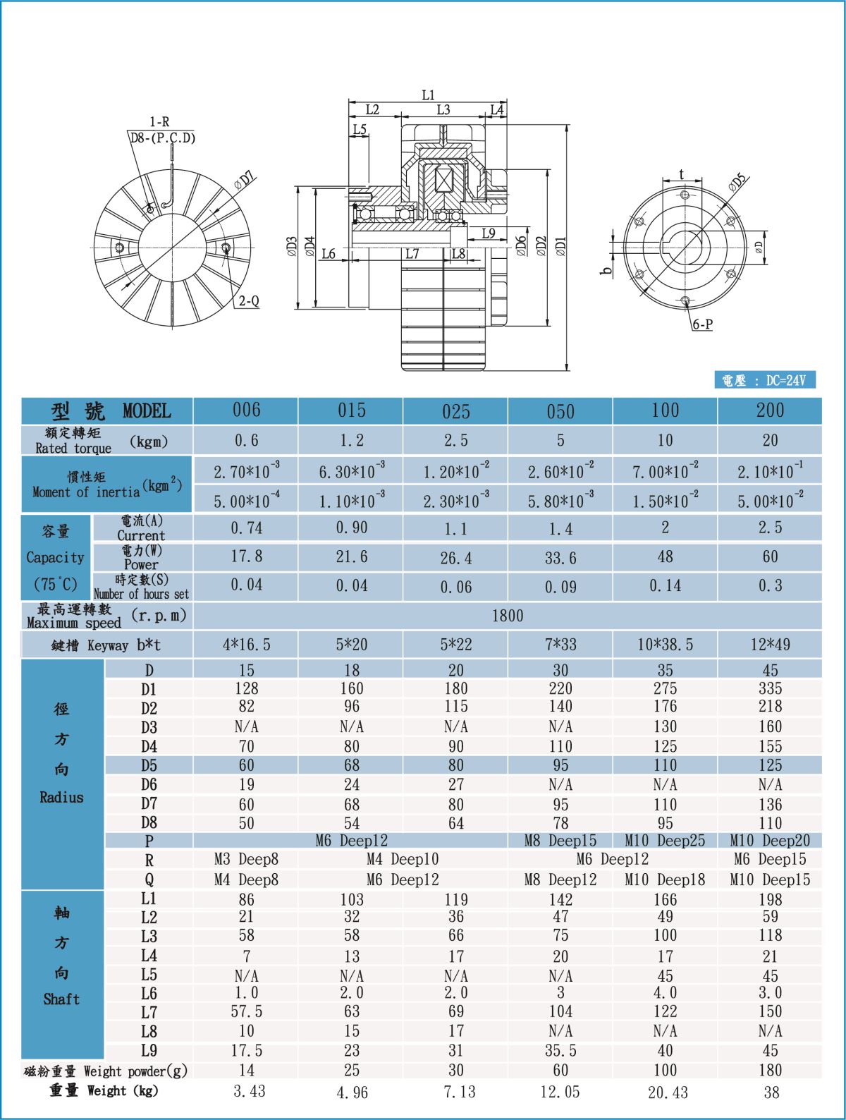 - 規(guī)格:扭矩0.6kg.m至40kg.m,可依使用需求選用。